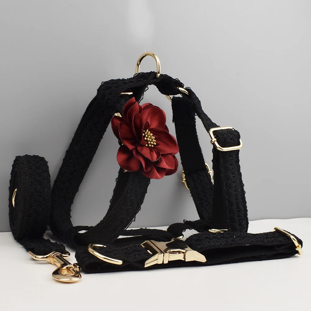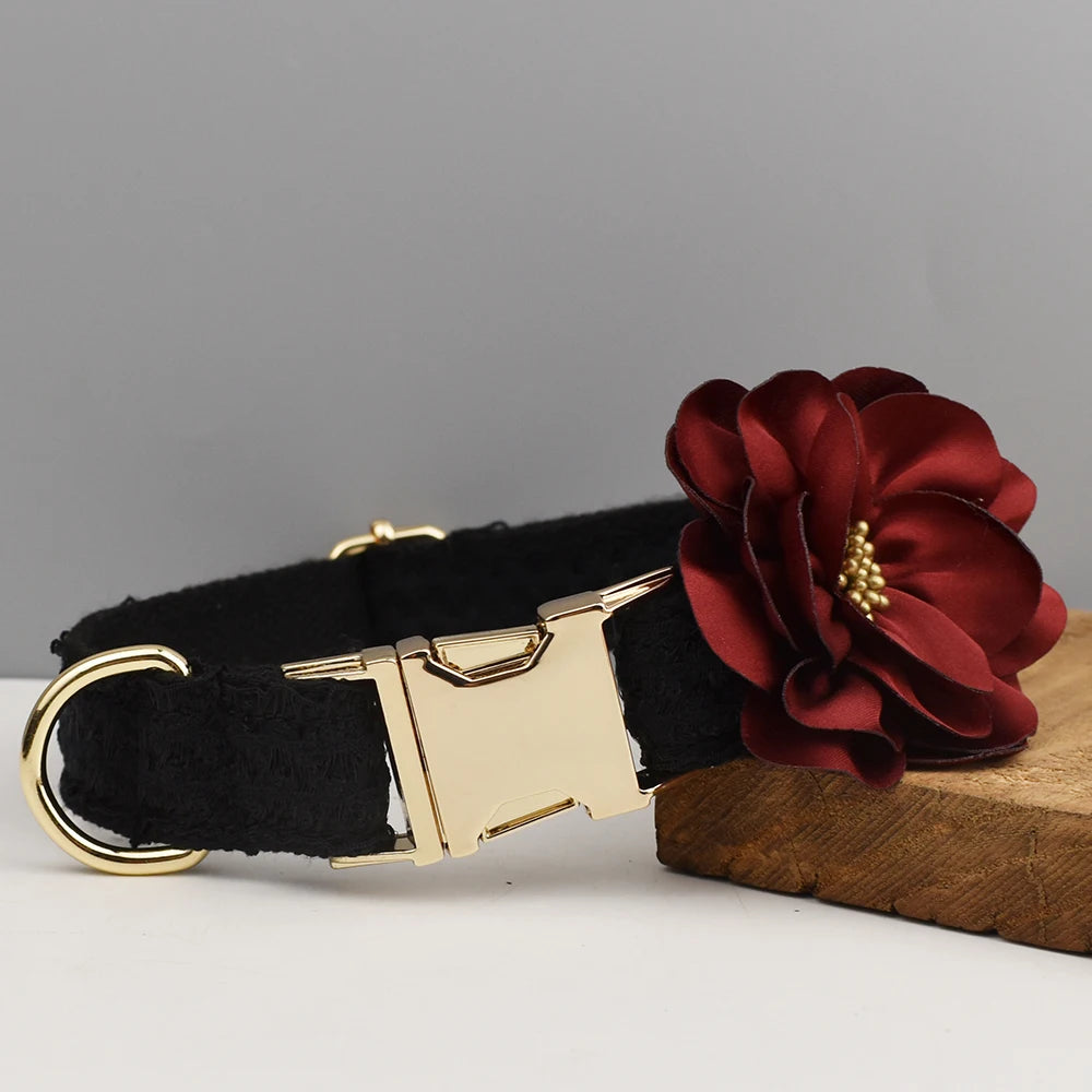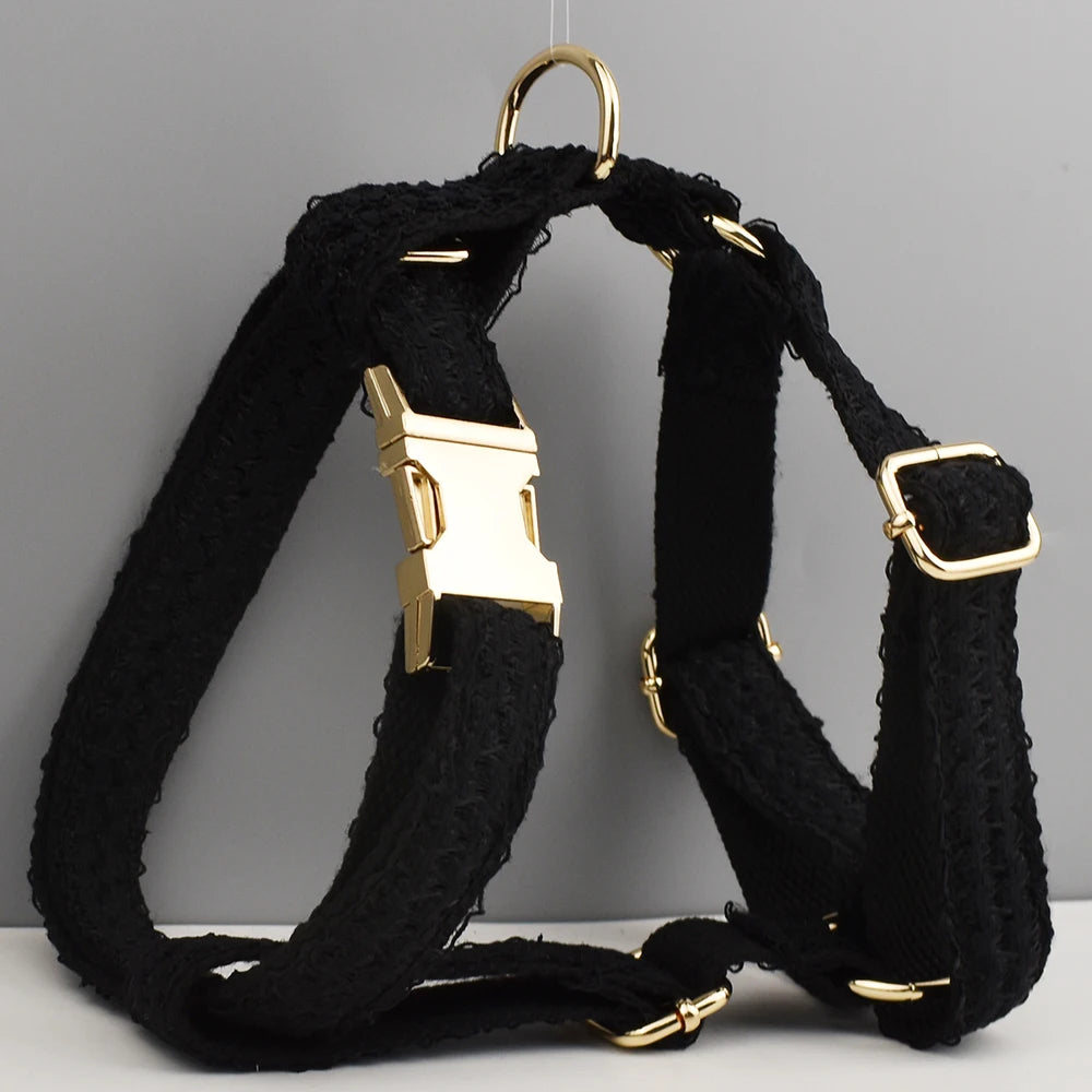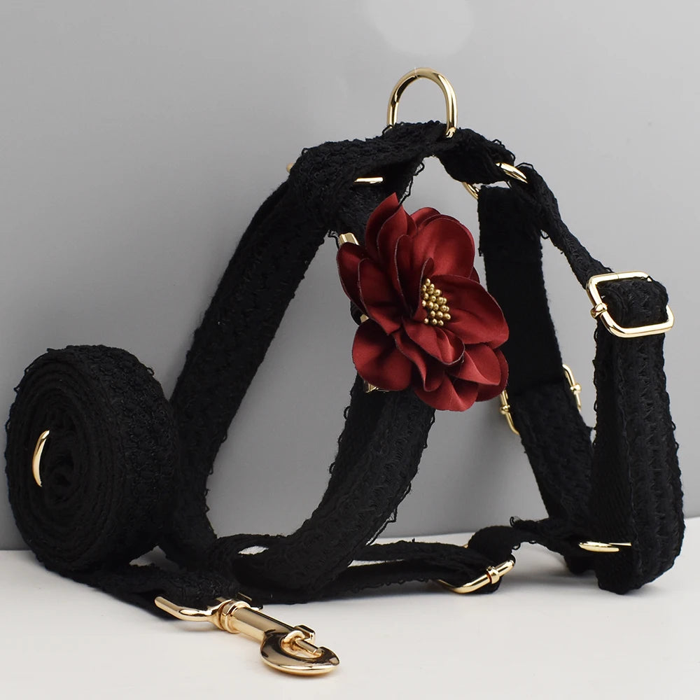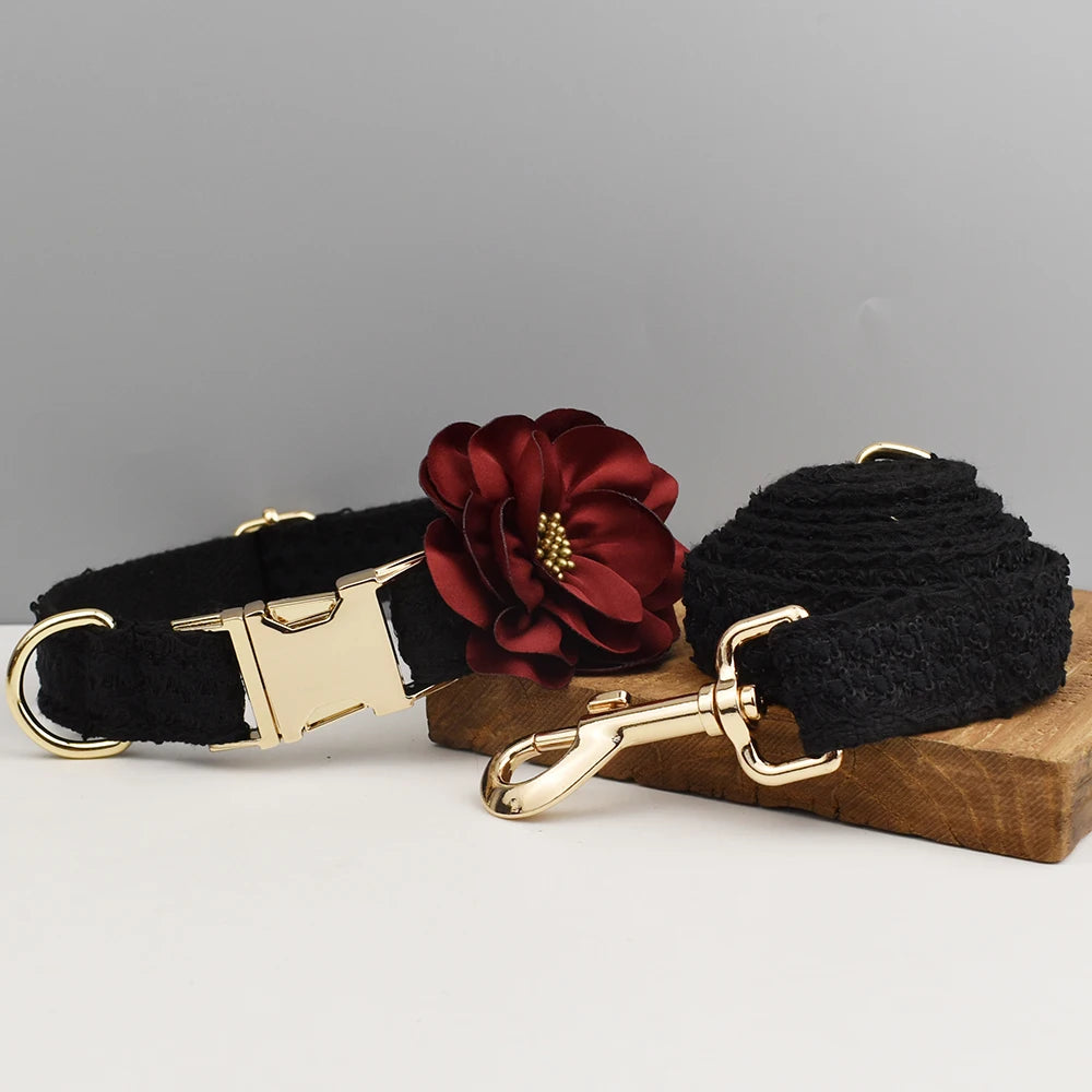Blace Lace Dog Collar Personalizd Custom Engraved Nameplate Pet Wedding Collar Harness For Dogs