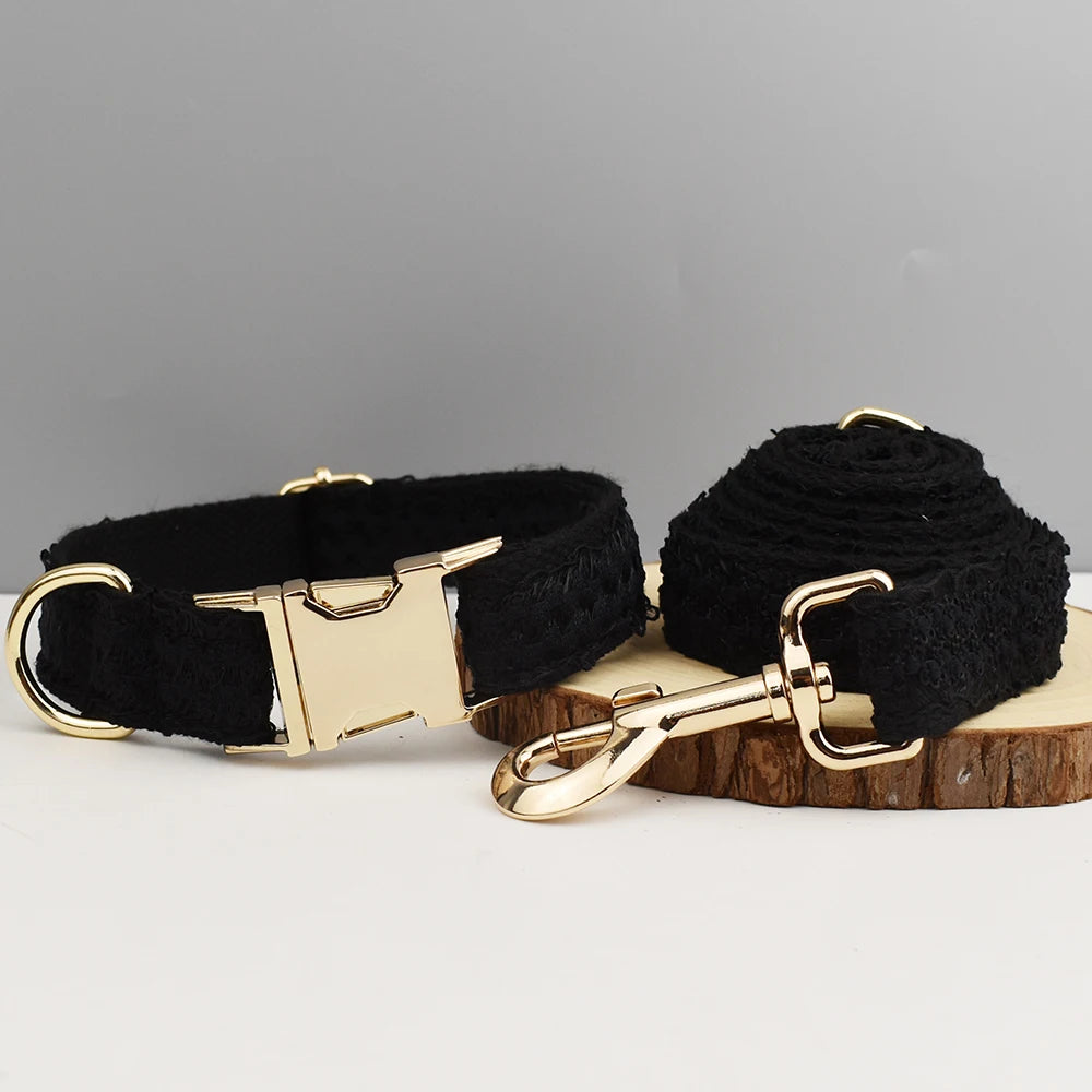 Blace Lace Dog Collar Personalizd Custom Engraved Nameplate Pet Wedding Collar Harness For Dogs Dog Accessories Luxury Lace03