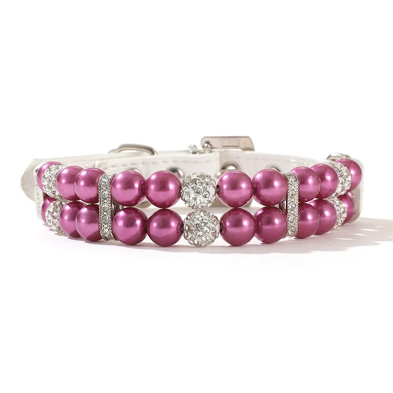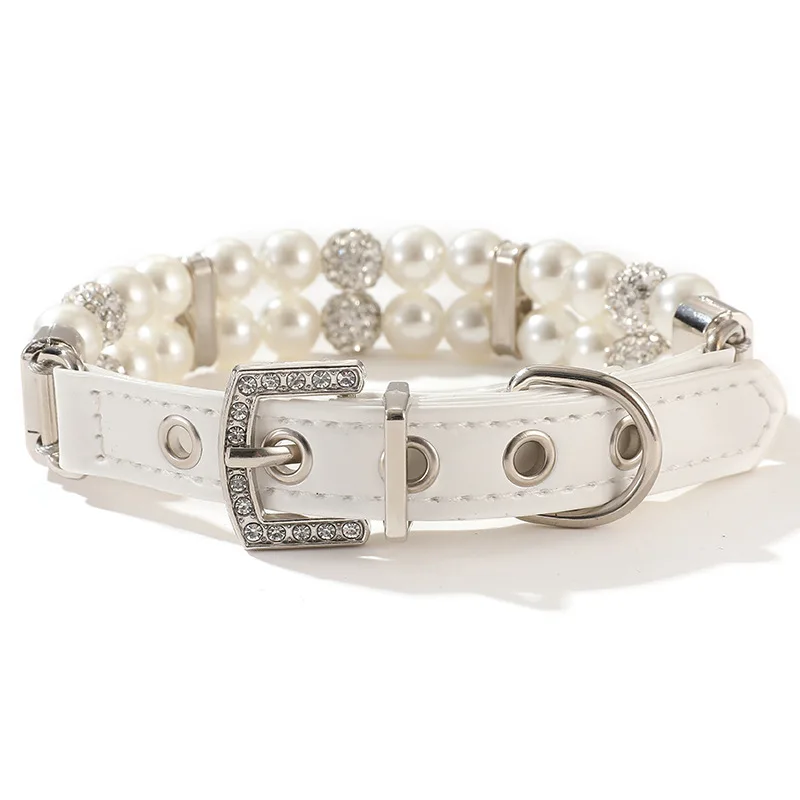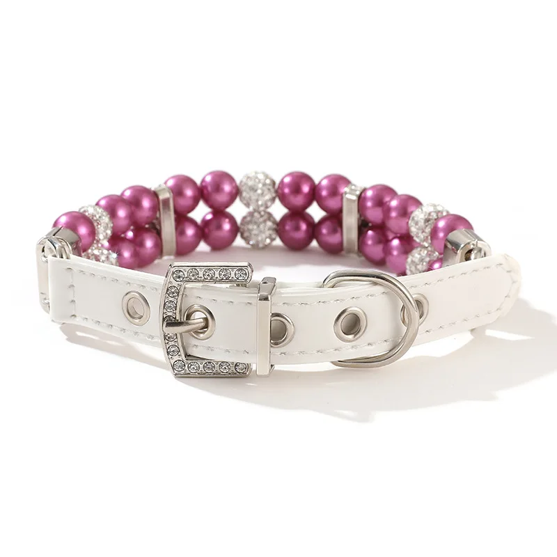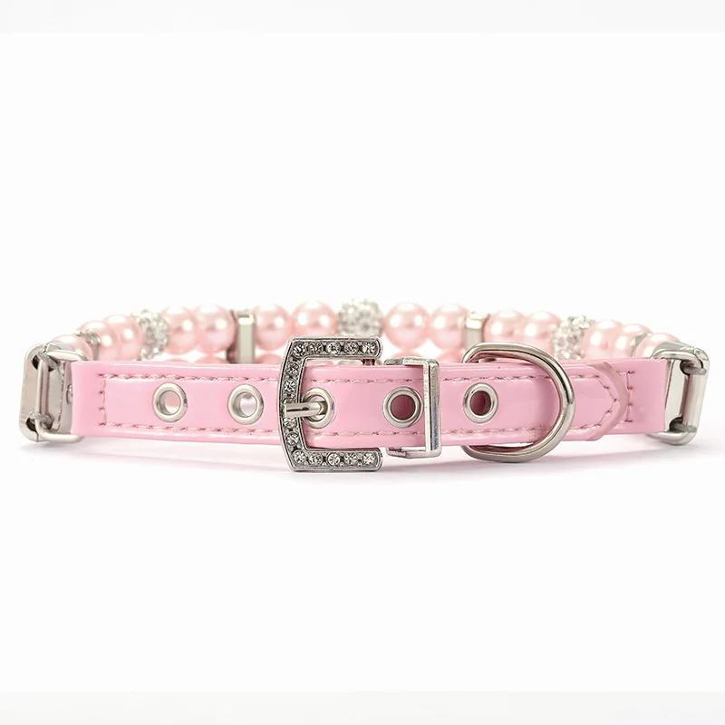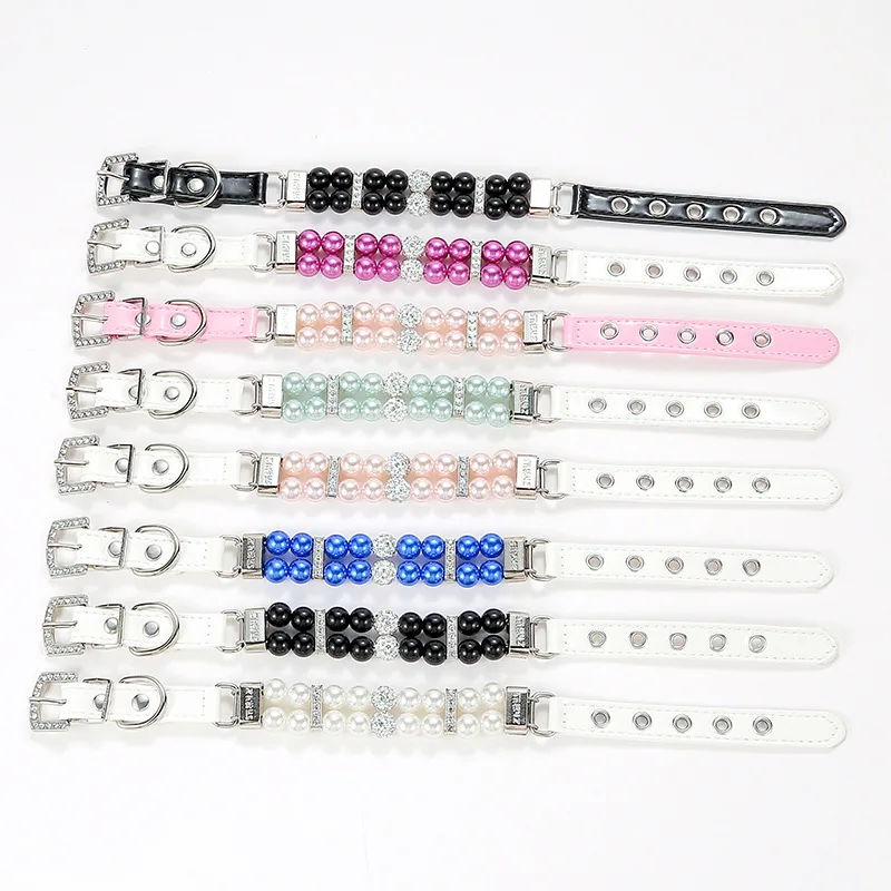 Fashion PU Leather Dog Collars Pearl&Diamond Accessories Personality Necklace Jewelry for Puppy Dog Cat Pet Supplies