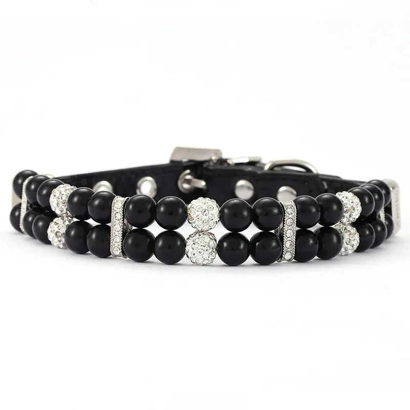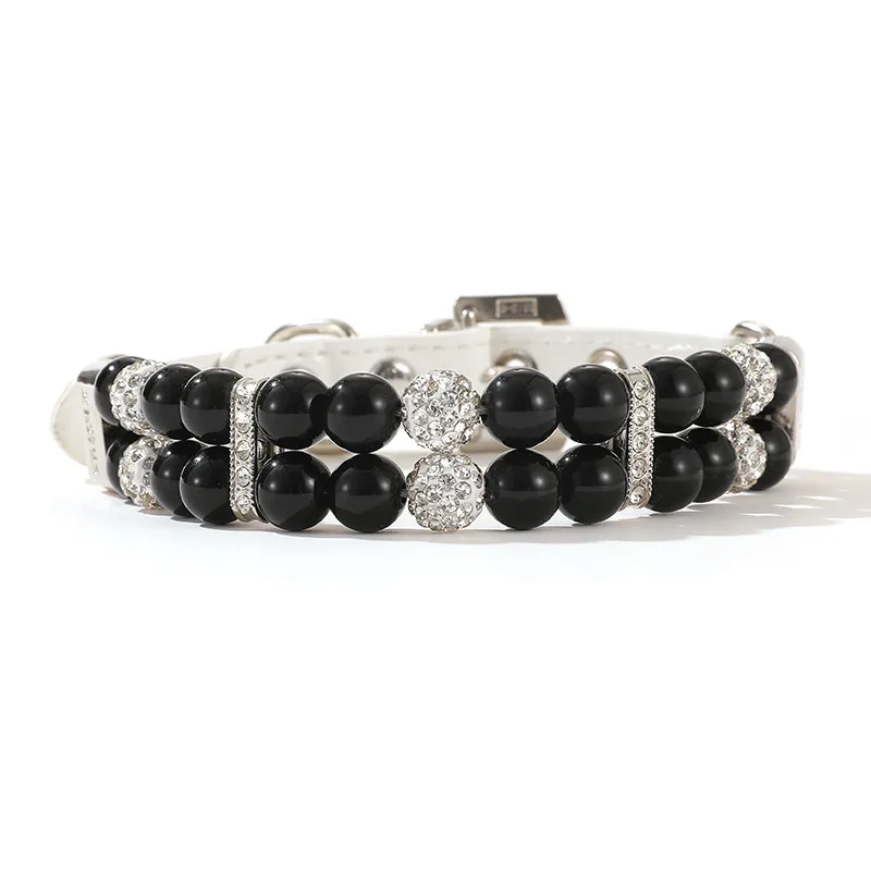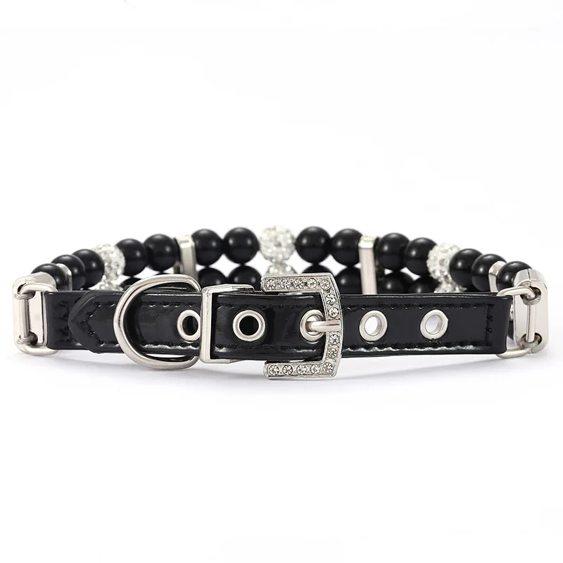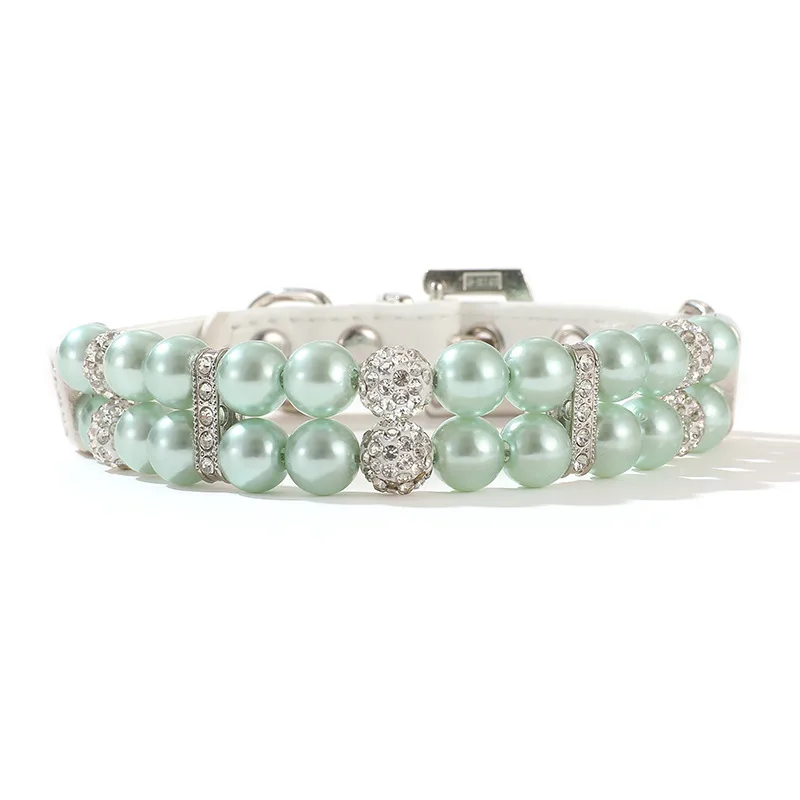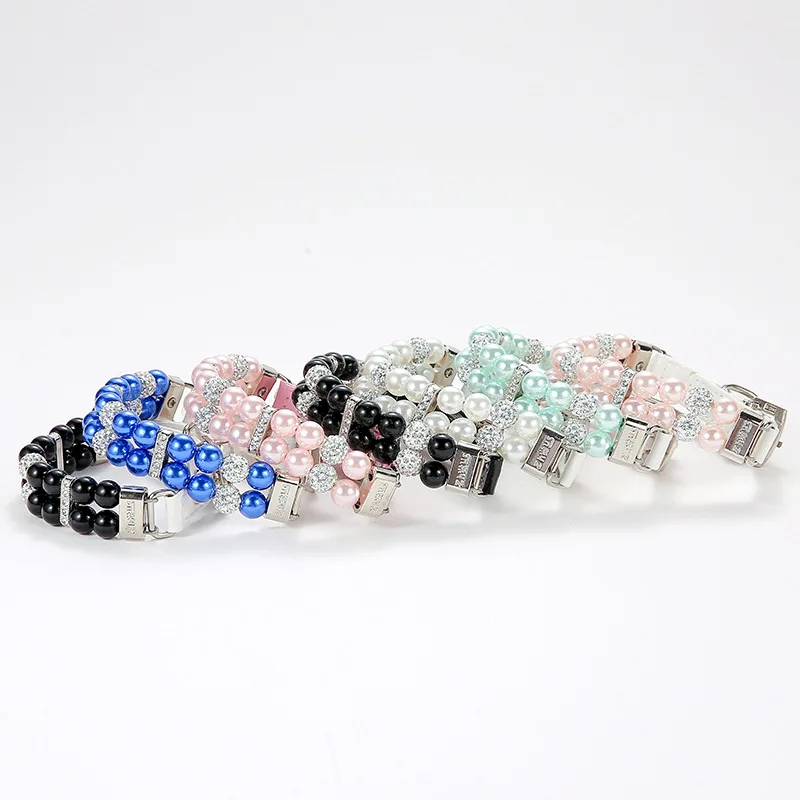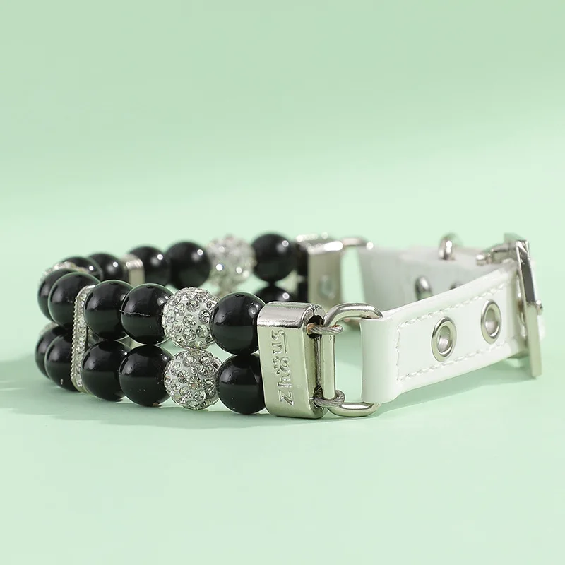 Fashion PU Leather Dog Collars Pearl&Diamond Accessories Personality Necklace Jewelry for Puppy Dog Cat Pet Supplies
