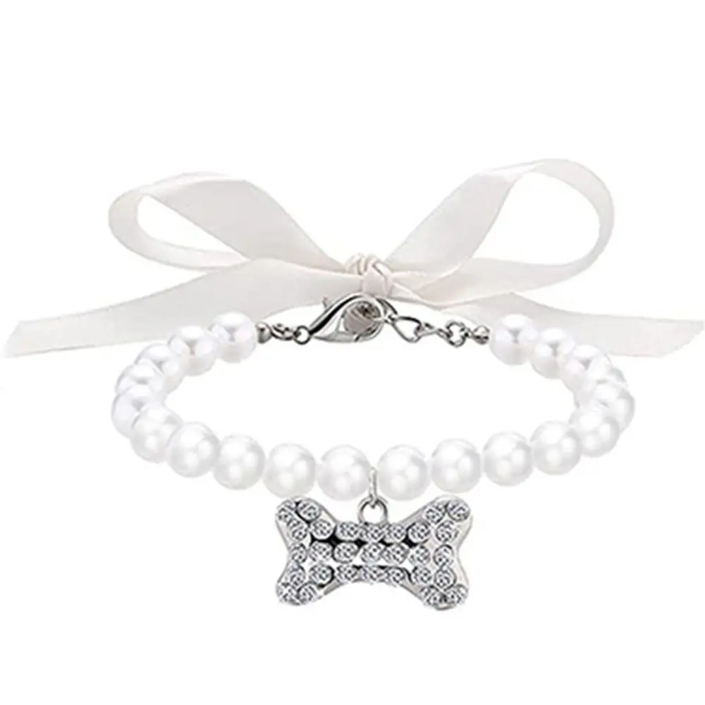 Imitation Pearl Cute Dog Necklace Pet Collar Accessories Jewelry Neck Chain For Small Dogs Large Dog Cats 5 colors