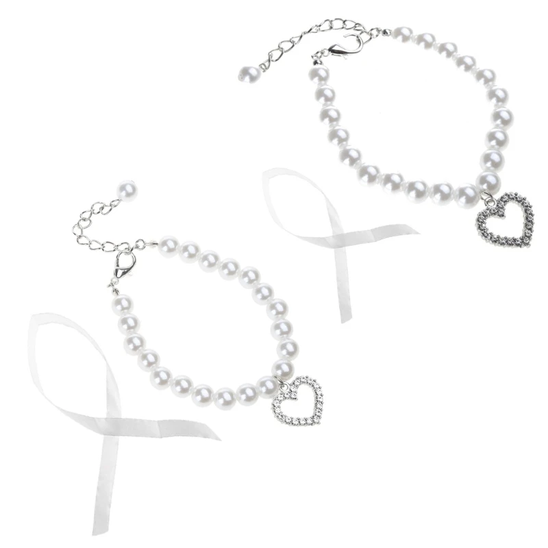 LXAF Pet Pearl Necklace Dog Pearl Collar with Lobster Clip Pets Jewelry Accessories Adjustable for Small Medium Dogs Cats