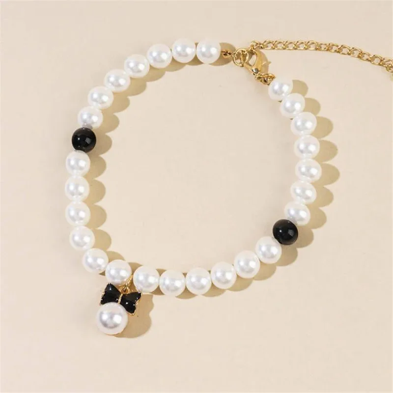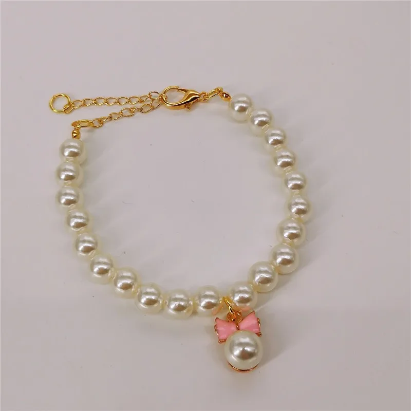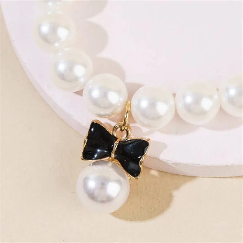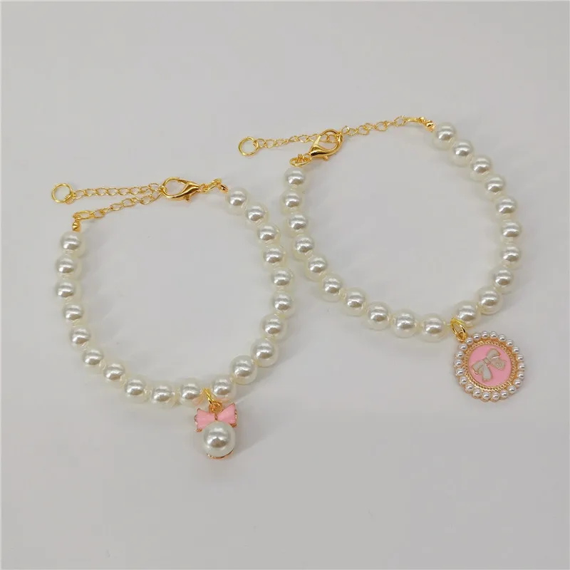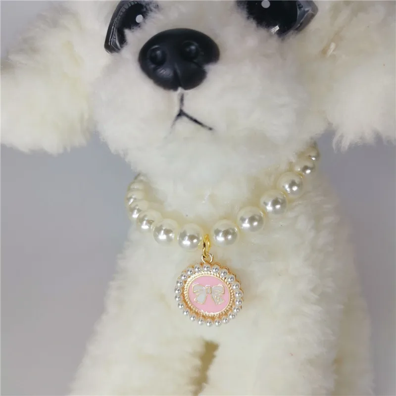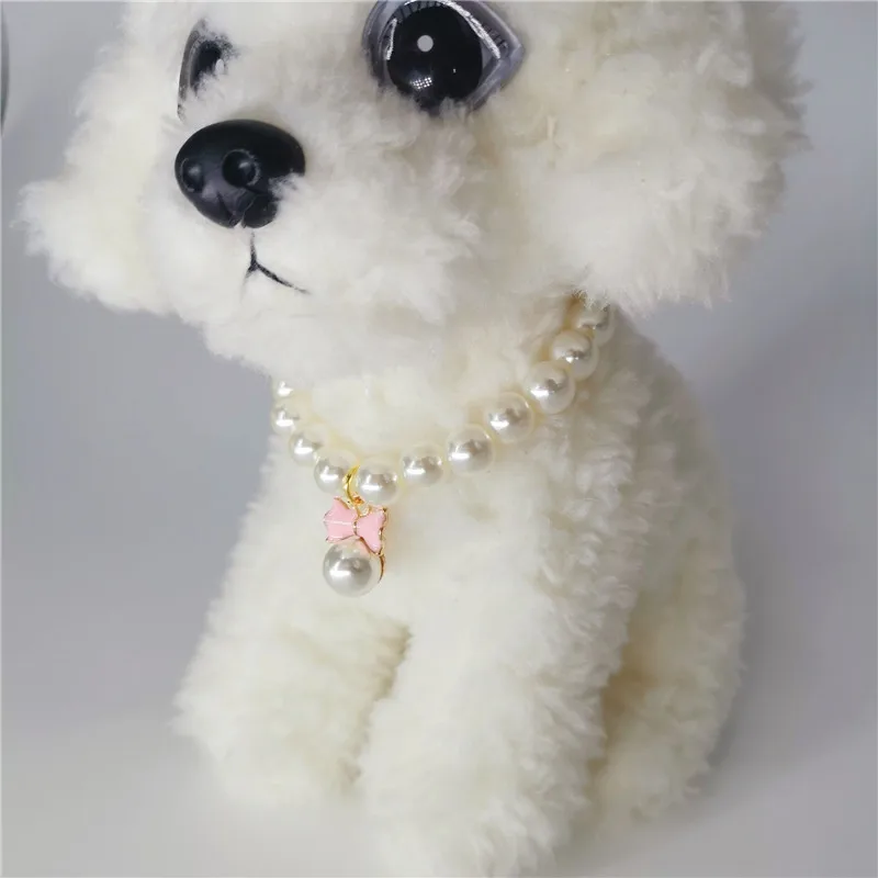 Pet Pearl Collar Dog Princess Necklace Cat Jewelry Cute Bow Collar Puppy Accessories Dog Chain Chihuahua Wedding Jewelry Stuff