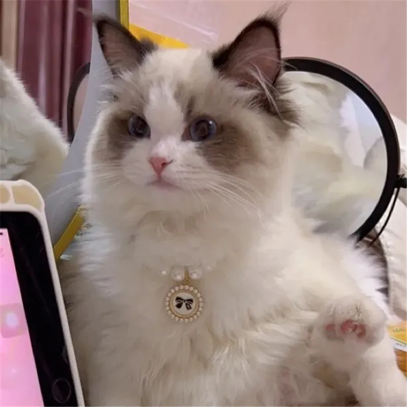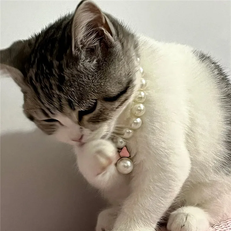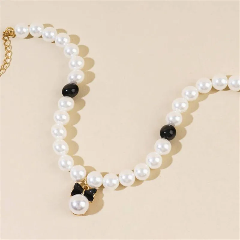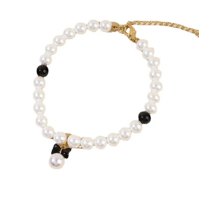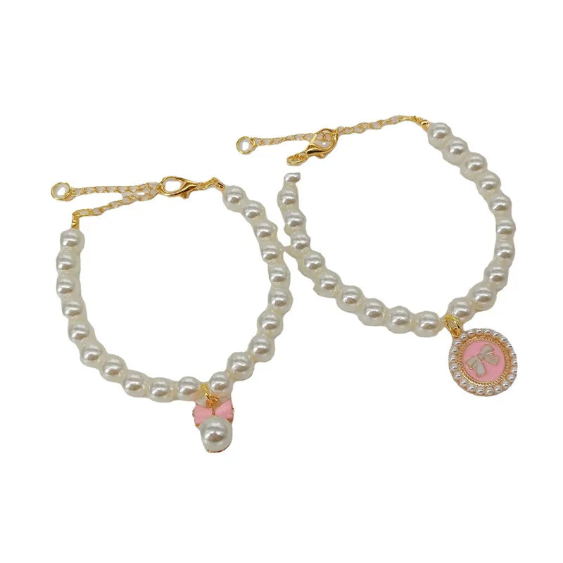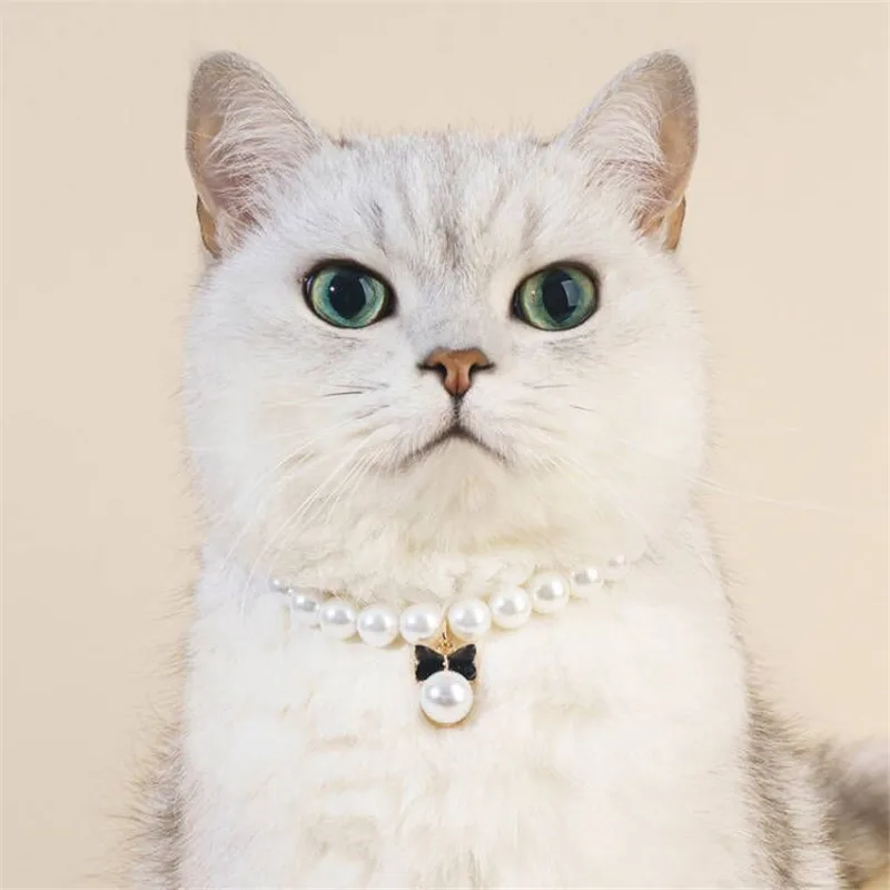 Pet Pearl Collar Dog Princess Necklace Cat Jewelry Cute Bow Collar Puppy Accessories Dog Chain Chihuahua Wedding Jewelry Stuff